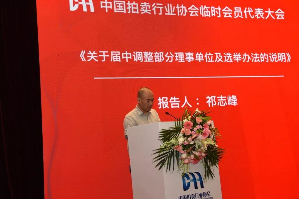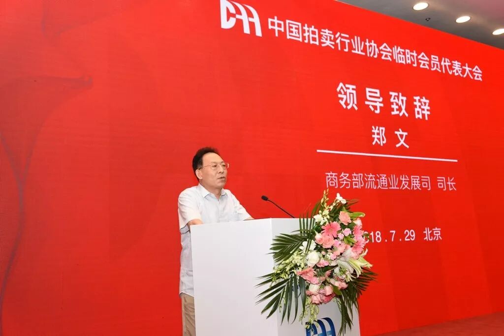 7月29日下午,中國拍賣(mài)行業(yè)協(xié)會(huì )臨時(shí)會(huì )員代表大會(huì )在京召開(kāi),中國物流與采購聯(lián)合會(huì )會(huì )長(cháng)何黎明、商務(wù)部流通業(yè)發(fā)展司司長(cháng)鄭文、國資委行業(yè)協(xié)會(huì )商會(huì )黨建工作局副局長(cháng)方長(cháng)安、海關(guān)總署財務(wù)司綜合處處長(cháng)龍夫春、商務(wù)部流通業(yè)發(fā)展司中小企業(yè)處處長(cháng)楊寶京、國家市場(chǎng)監管總局市場(chǎng)規范管理司市場(chǎng)處處長(cháng)張廣領(lǐng)、國資委行業(yè)協(xié)會(huì )商會(huì )黨建工作局人事處處長(cháng)毛金鋒、人力資源與社會(huì )保障部專(zhuān)業(yè)技術(shù)人員管理司職稱(chēng)處處長(cháng)付永生、公安部治安局娛樂(lè )場(chǎng)所和特種行業(yè)治安管理工作指導處處長(cháng)李金科、中國拍賣(mài)行業(yè)協(xié)會(huì )名譽(yù)會(huì )長(cháng)張延華、中拍協(xié)原會(huì )長(cháng)余平、中石油資產(chǎn)管理有限公司資產(chǎn)管理部總經(jīng)理徐黎、中拍協(xié)會(huì )長(cháng)黃小堅、副會(huì )長(cháng)徐勉之、雷敏、苗華甫、王中明、李偉、張力、法勇生、陳志坤、祁志峰、韓濤,秘書(shū)長(cháng)李衛東和466位中拍協(xié)會(huì )員單位代表參加會(huì )議,會(huì )議由雷敏副會(huì )長(cháng)主持。