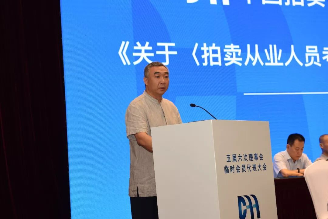 7月29日,中國拍賣(mài)行業(yè)協(xié)會(huì )五屆六次理事會(huì )在北京召開(kāi)。中拍協(xié)名譽(yù)會(huì )長(cháng)張延華、會(huì )長(cháng)余平、常務(wù)副會(huì )長(cháng)黃小堅、副會(huì )長(cháng)徐勉之、雷敏、苗華甫、王中明、李偉、張力、法勇生、陳志坤、祁志峰、韓濤,秘書(shū)長(cháng)李衛東,原中拍協(xié)副會(huì )長(cháng)劉浚年、馬巧嘏等領(lǐng)導在主席臺就坐。中拍協(xié)副會(huì )長(cháng)徐勉之主持。